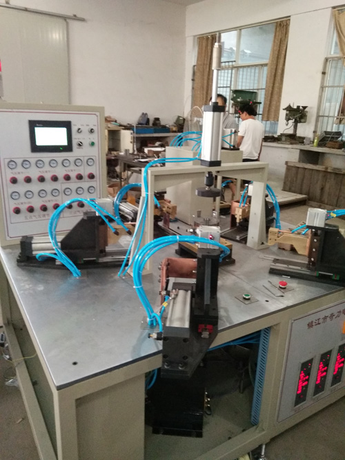 該機(jī)采用PLC控制智能控制配以全數(shù)字電路的SUN18B精密數(shù)顯控制器,可預(yù)存4-15種焊接規(guī)范,兩段焊接電流,可同時進(jìn)行焊接、回火,人工上料多工位定位自動焊接的半自動焊接的一體化專用點(diǎn)焊機(jī)。電流參數(shù)設(shè)置精確焊接,執(zhí)行元件采用AirTAC氣動元件,使整機(jī)運(yùn)行安全可靠。廣泛用于消防器材生產(chǎn)。
